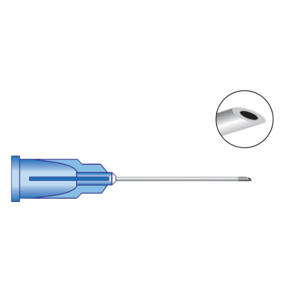 Aguja retrobulbar 23G 1 ½” – Precisión y seguridad en bloqueos oculares Aguja de 23G, longitud 1 ½” para procedimientos retrobulbares. Diseño fino y preciso. Presentación: caja de 10 unidades.