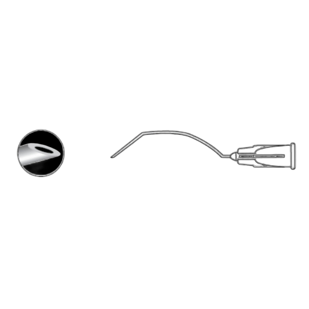 Aguja Retrobulbar Curva Atkinson-Straus 0,5 × 30 mm – Caja 10 uds Aguja curva para anestesia retrobulbar en cirugía oftálmica. Diámetro 0,5 mm, longitud 30 mm. Precisión y seguridad en procedimientos oculares.