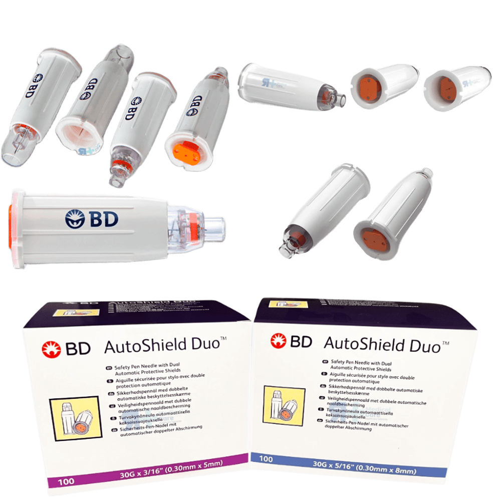 Aguja de alta seguridad BD AutoShield™ Duo, diseñada para inyecciones subcutáneas de insulina en plumas, bolígrafos y jeringas precargadas. Su punta de triple biselado y proceso de afilado minimizan el dolor y el trauma en el tejido cutáneo. Dispone de un doble protector que se activa automáticamente, con una banda indicadora y un clic de confirmación que asegura la protección en ambos extremos tras su uso, evitando pinchazos accidentales. Fabricada con materiales de grado médico, incluyendo acero inoxidable para la cánula y polipropileno para los protectores y envase, garantizando seguridad, compatibilidad y facilidad de uso. El sistema de conexión de rosca asegura un acoplamiento firme a las plumas. Su envase unitario mantiene la esterilidad hasta el momento del uso y está codificado por colores para rápida identificación por parte de profesionales sanitarios. Cumple con normativas CE e ISO, asegurando calidad y fiabilidad en cada aguja. Características: Doble sistema de seguridad que protege ambos extremos de la aguja. Indicadores visuales de activación: banda roja y clic de confirmación. Punta de triple biselado para minimizar el dolor y el trauma cutáneo. Compatible con todas las plumas, bolígrafos y jeringas precargadas de insulina estándar. Conexión de rosca para asegurar un acoplamiento firme a las plumas. Fabricada con materiales de grado médico: acero inoxidable y polipropileno. Envase unitario estéril para mantener la seguridad hasta el momento de uso. Código de color en envase y precintos para identificación rápida. Activación automática de los protectores al extraerse de la piel y de la pluma. Cumple con normativas CE e ISO para calidad y seguridad.