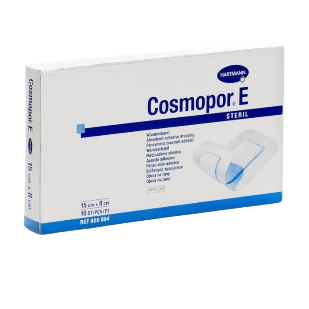 Cosmopor E – Apósito autoadhesivo estéril para protección y absorción en heridas quirúrgicas Cosmopor E es un apósito estéril, autoadhesivo, no activo y de un solo uso, diseñado para la protección de heridas postquirúrgicas o heridas primarias con exudado de volumen normal. Su estructura incluye un material portador recubierto de adhesivo hipoalergénico y una almohadilla central absorbente, cubierta con un papel protector de silicona que se retira fácilmente antes de la aplicación. Este apósito proporciona una fijación segura y una barrera física que protege la herida de agentes externos, al mismo tiempo que absorbe el exudado para mantener el entorno húmedo adecuado para la cicatrización. Es no invasivo, fácil de usar y está especialmente indicado para el cuidado postoperatorio en entornos clínicos o domiciliarios. Características destacadas: • Apósito estéril autoadhesivo de un solo uso • No activo y no invasivo • Almohadilla absorbente integrada • Papel protector de silicona para aplicación higiénica • Ideal para heridas postquirúrgicas o primarias