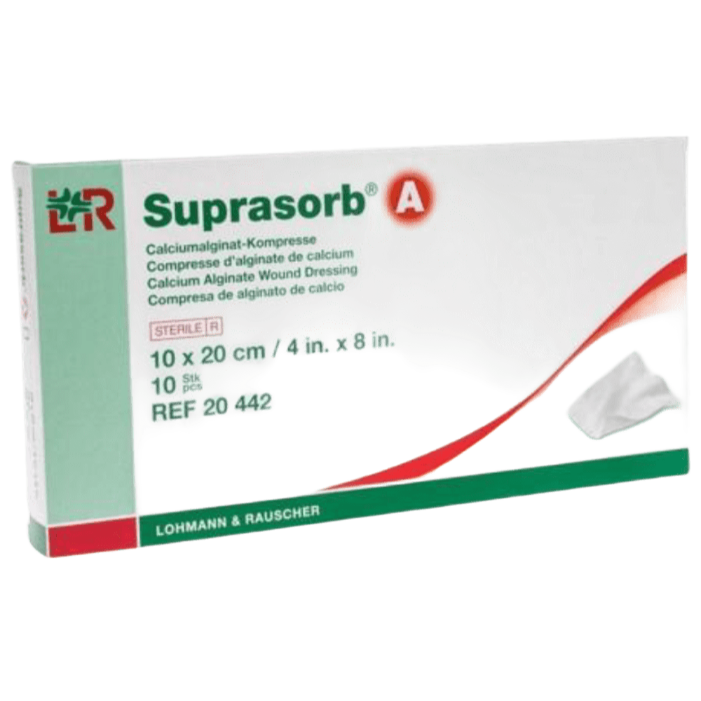 Apósito Alginato Calcio Suprasorb Dressg. ST 10 x 20 cm- Caja de 10 unidades. Apósito estéril de alginato de calcio, tamaño 10 x 20 cm, ideal para el tratamiento de heridas exudativas. Fabricado por FARMABAN, S.A.