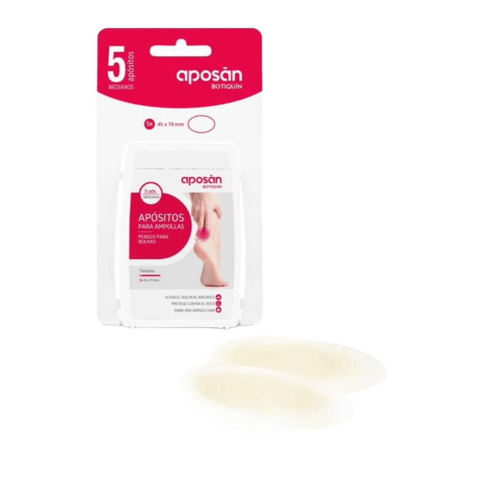 El Apósito Hidrocoloide para Ampollas Mediano está diseñado para el tratamiento y protección de ampollas, rozaduras o pequeñas heridas superficiales. Su tecnología hidrocoloide crea un entorno húmedo que acelera la cicatrización natural, al mismo tiempo que alivia el dolor y protege frente a la fricción, la suciedad y las bacterias. Gracias a su adhesión suave y duradera, el apósito se adapta perfectamente a la piel, incluso en zonas de movimiento como talones o dedos, asegurando una fijación cómoda y discreta. Ideal tanto para el uso diario como para actividades deportivas o laborales, donde es frecuente la aparición de ampollas por fricción. El formato mediano ofrece una cobertura adecuada para ampollas de tamaño estándar, y su presentación en caja de 5 unidades garantiza higiene, comodidad y practicidad. Características principales Producto: Apósito Hidrocoloide para Ampollas Mediano. Presentación: Caja con 5 unidades individuales. Tecnología: Hidrocoloide autoadhesivo que mantiene un entorno húmedo para una curación más rápida. Función: Protege la zona afectada, alivia el dolor y favorece la regeneración de la piel. Tamaño: Mediano (ideal para ampollas de talones, dedos o zonas con roce). Beneficios: Actúa como una segunda piel. Barrera frente a bacterias y suciedad. Permanece en su lugar durante varios días. Uso: Para el tratamiento de ampollas, rozaduras o heridas leves. Aplicación: Piel limpia y seca; se mantiene hasta que el apósito se desprenda por sí solo. Certificación: Producto sanitario conforme a la normativa europea vigente (CE).