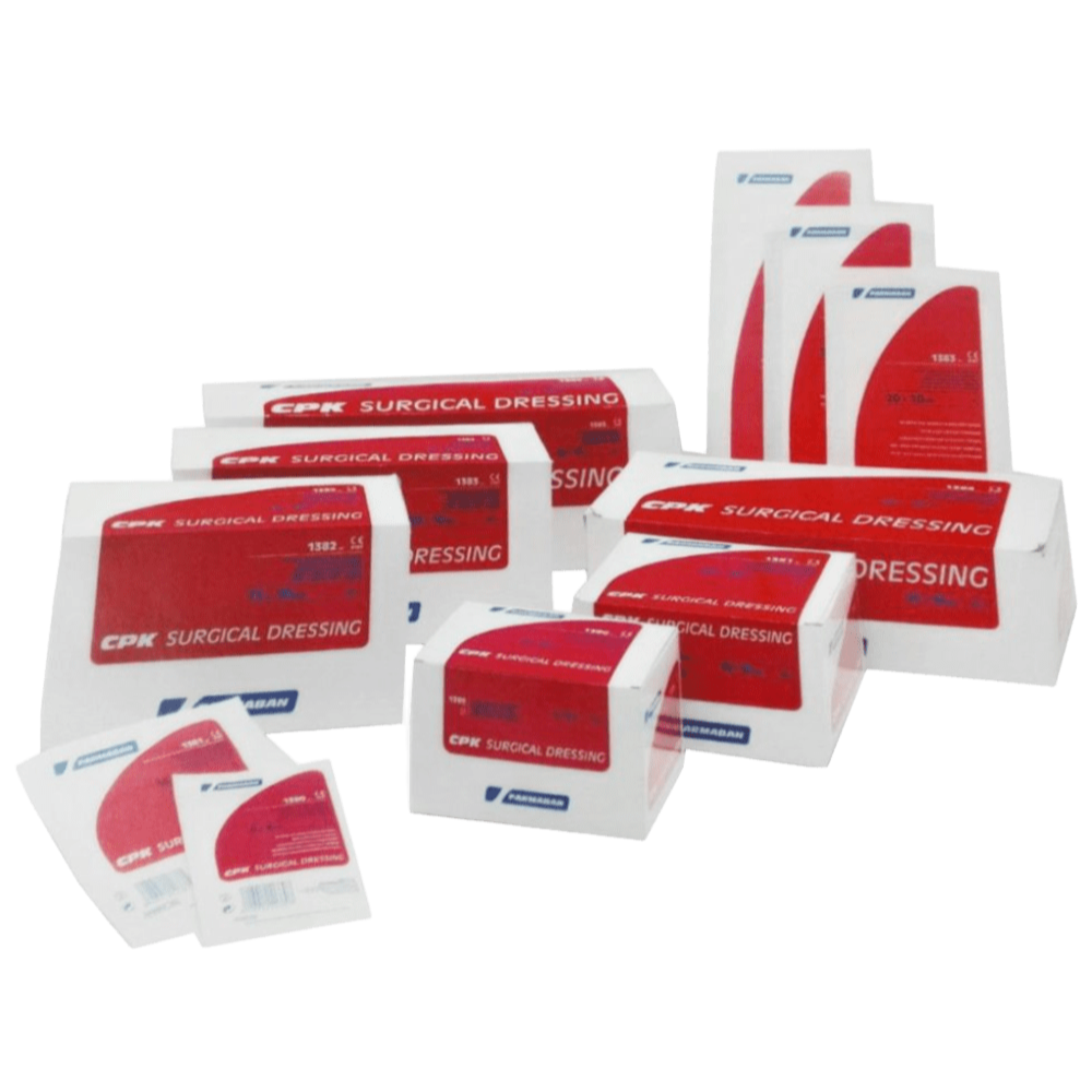 Apósito quirúrgico CPK SURGICAL – Caja de 50 unidades. Apósito quirúrgico estéril CPK, diseñado para una protección eficaz de heridas. Con compresa central absorbente y adhesivo suave, es transpirable, elástico y fácil de aplicar. Disponible en varios tamaños.