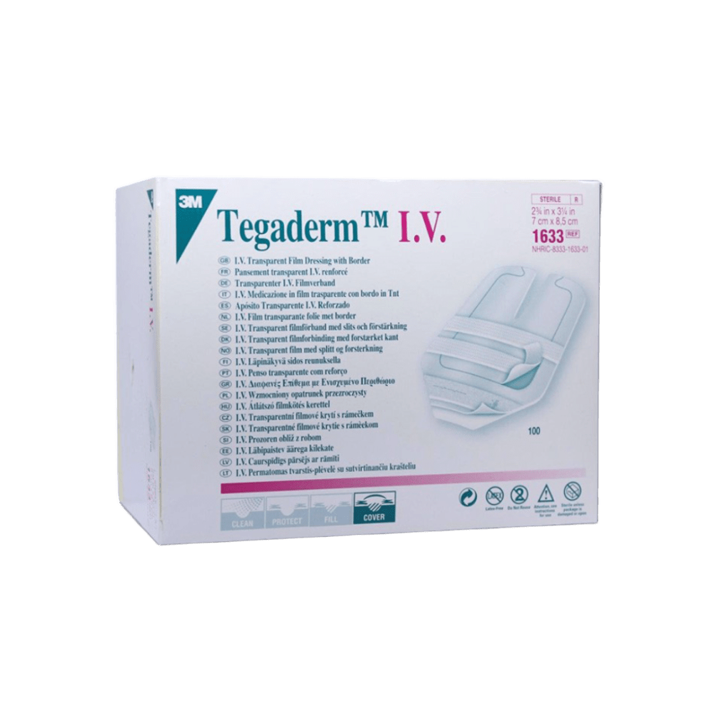Tegaderm I.V. con borde reforzado 7 x 8,5 cm – Protección estéril y fijación segura del catéter Apósito transparente estéril con borde reforzado. Estabiliza el catéter, permite control visual y protege frente a contaminantes. Caja de 100 unidades.