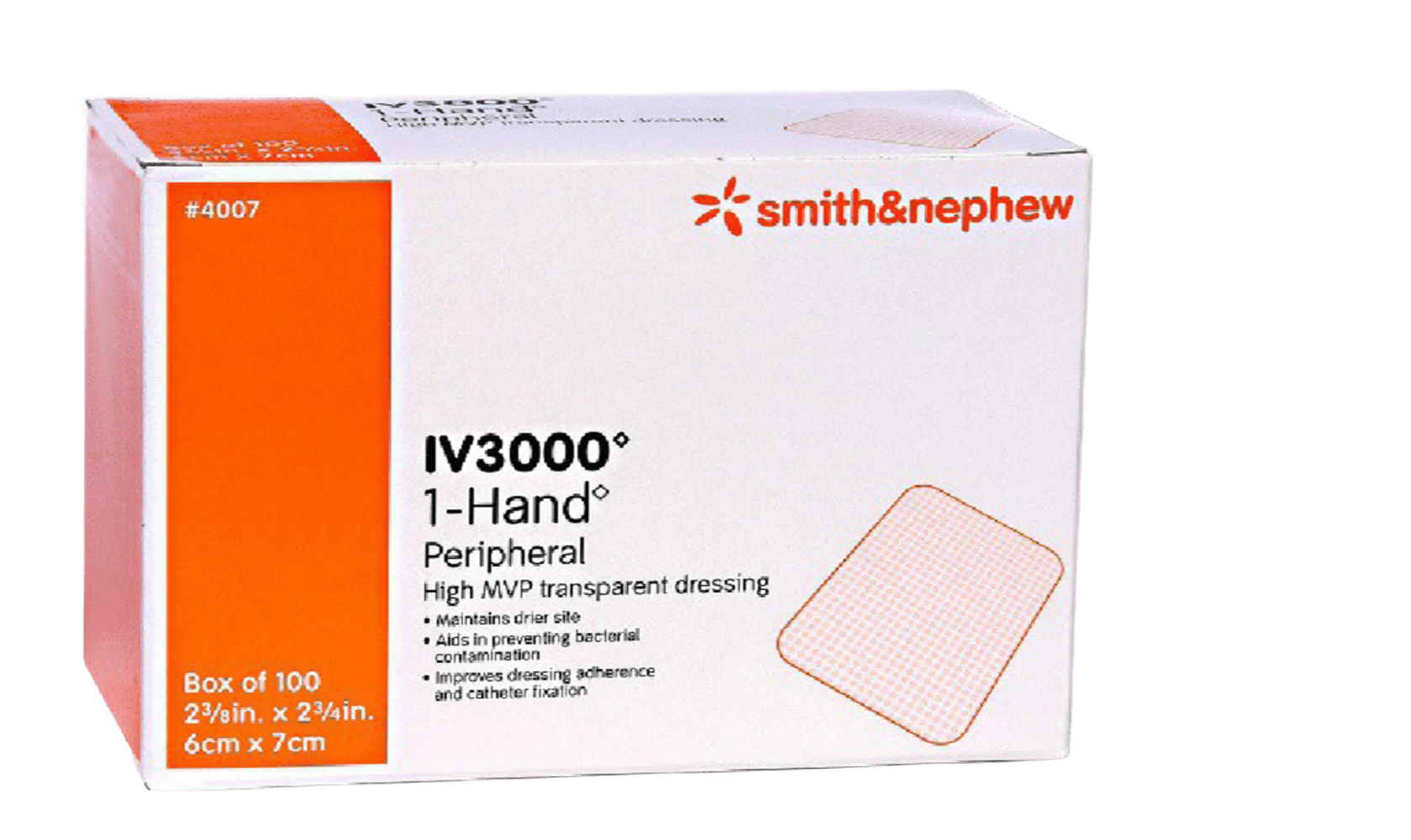 Apósito Op-Site IV3000 – Fijación segura y transpirable para catéteres Film de poliuretano translúcido, impermeable y permeable al vapor. Adhesivo acrílico hipoalergénico, fácil de aplicar gracias a su soporte plástico transparente.