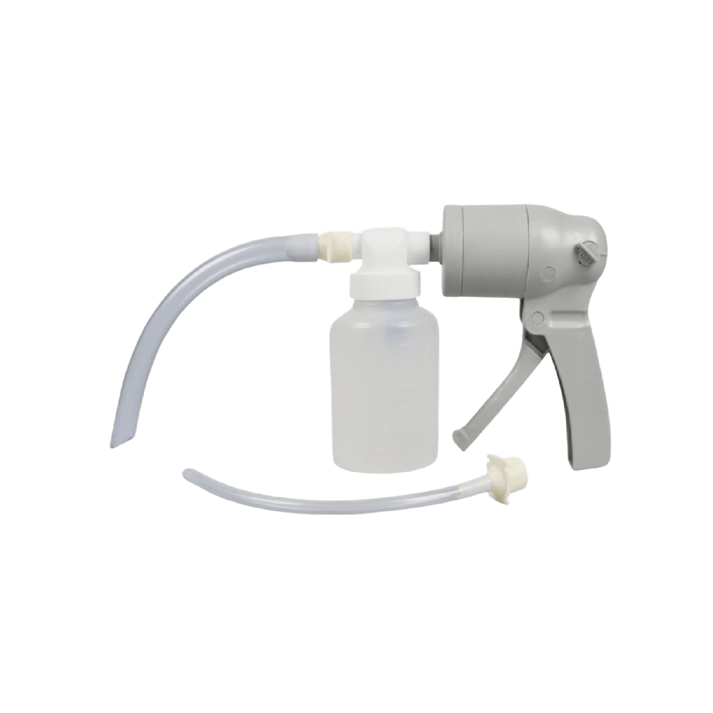 Aspirador de secreciones manual, portátil y sin mantenimiento, ideal para emergencias médicas, con depósito anti desbordamiento.