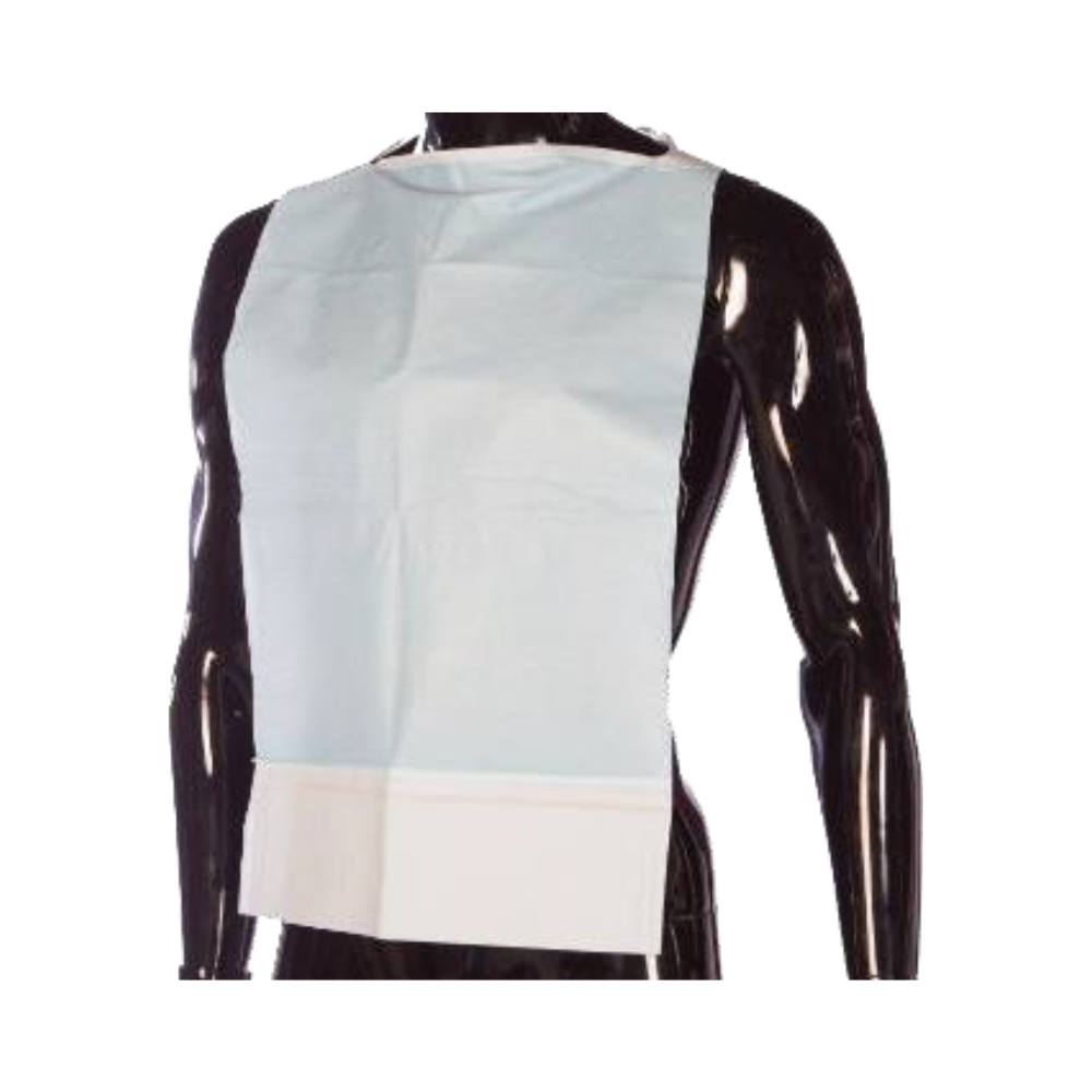 Babero Desechable Con Receptáculo 36 cm. x 64 cm Babero desechable de papel con capa protectora de polietileno