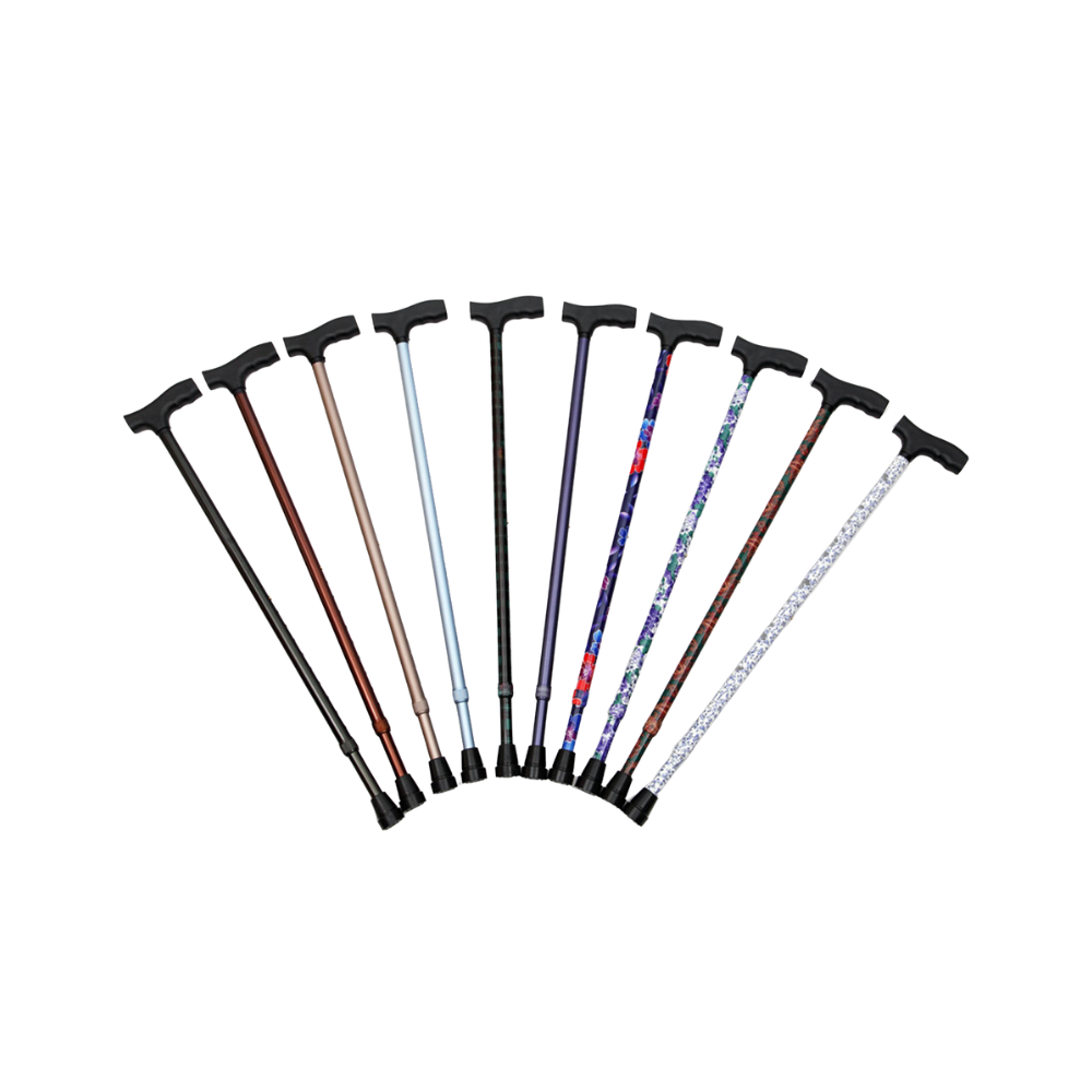 Bastón de aluminio ligero – Ajustable, silencioso y con estilo Bastón resistente y cómodo, con altura regulable, sistema antirruido y disponible en 10 modernos diseños y colores para combinar funcionalidad y elegancia.