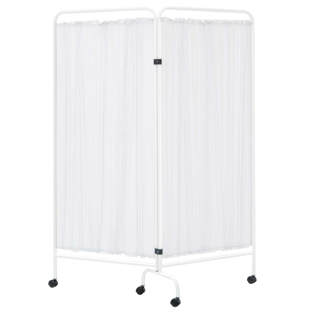 BIOMBO 2 CUERPOS C/ RUEDAS ACERO PINTADO - UNIDAD El Biombo de 2 Cuerpos con Ruedas en Acero Pintado proporciona privacidad, movilidad y resistencia en entornos sanitarios. Ideal para consultas, salas de curas y hospitales gracias a su estructura robusta y cortina opaca.