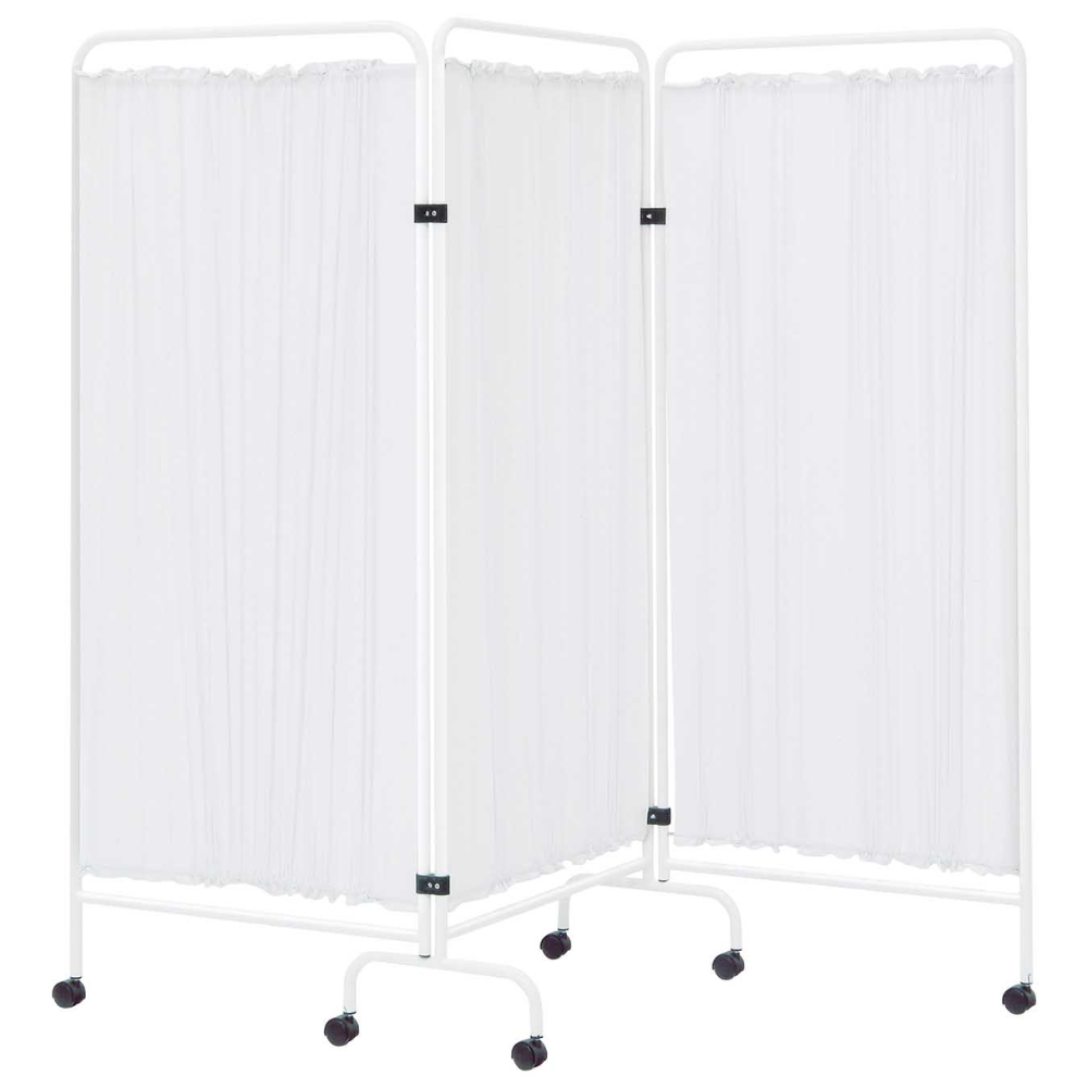 BIOMBO 3 CUERPOS C/ RUEDAS ACERO PINTADO - UNIDAD El Biombo de 3 Cuerpos con Ruedas en Acero Pintado ofrece privacidad, movilidad y resistencia para entornos sanitarios. Su estructura estable y las cortinas opacas garantizan una separación segura y cómoda en consultas, hospitales y centros asistenciales.