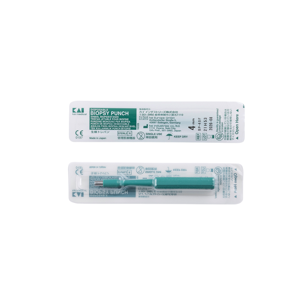 Biopsy Punch Estéril – Precisión y seguridad en biopsias dermatológicas Punch estéril de un solo uso, de acero inoxidable, libre de látex y PVC. Mango ergonómico para mayor comodidad durante el procedimiento.