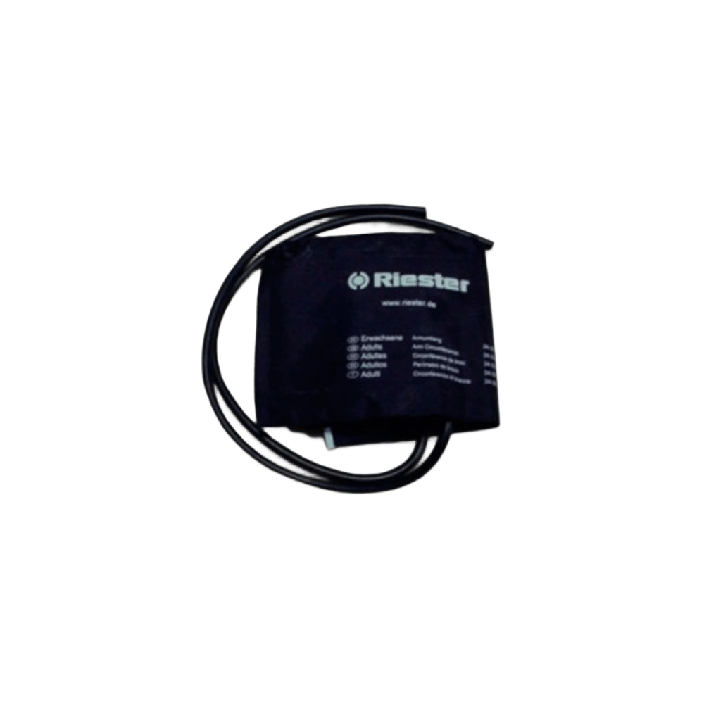 Brazalete Adulto Obeso Riester – 2 salidas Brazalete con velcro para tensiómetro aneroide, especial para pacientes obesos. Medidas: 58,5 × 18,5 cm. Compatible con equipos Riester.