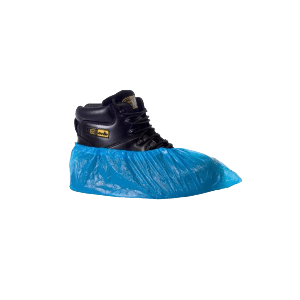 Calza plástico azul – Caja de 100 unidades. Cubre zapatos Azul de Plástico (CPE), ambidiestros para visitas.