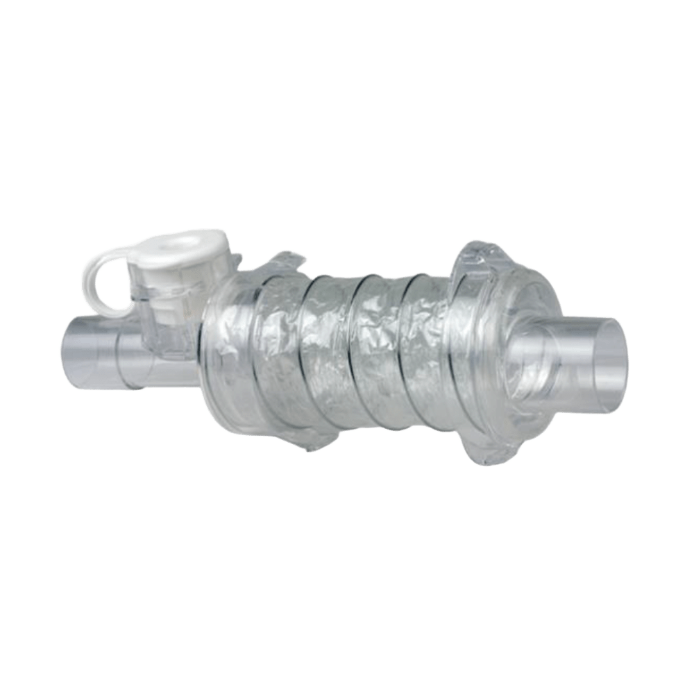 Cámara Aerochamber Vent – Para Administración de MDI en Ventilación Mecánica Cámara de retención plegable para uso con inhaladores en circuitos de ventilación mecánica. Uso individual, sin látex. Permite administración sin desconexión del circuito.