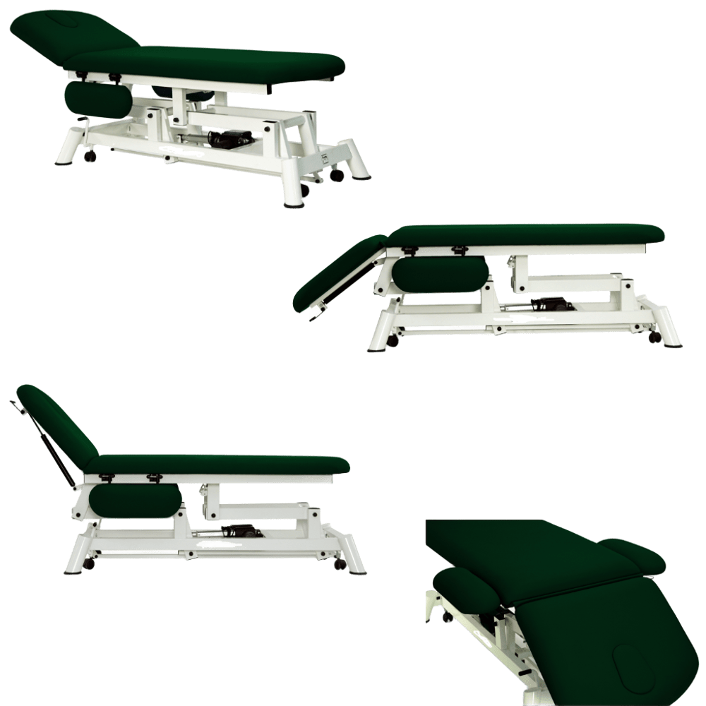 CAMILLA ELÉCTRICA DOS CUERPOS 62 cm. X 190 cm. - UNIDAD Camilla eléctrica de dos cuerpos con superficie de 62 × 190 cm, diseñada para consultas médicas, fisioterapia y estética. Ajuste eléctrico de altura, estructura robusta y tapizado sanitario de alta resistencia.