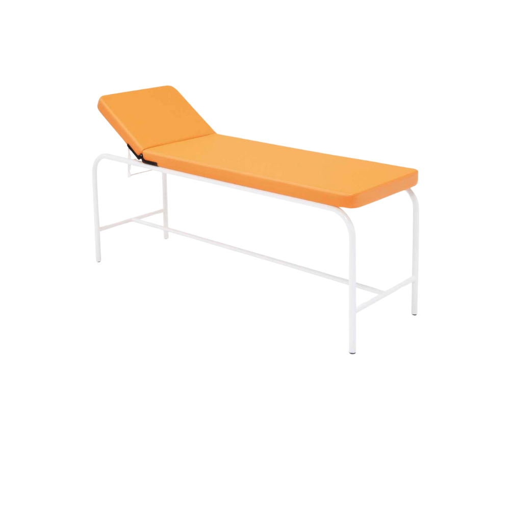 Camilla para exploración y reconocimiento – Estabilidad, higiene y confort Estructura de acero con revestimiento en epoxy, cabecero regulable 70°, tapizado ignífugo en polipiel y acolchado de alta densidad. Ideal para exámenes médicos y revisiones clínicas.