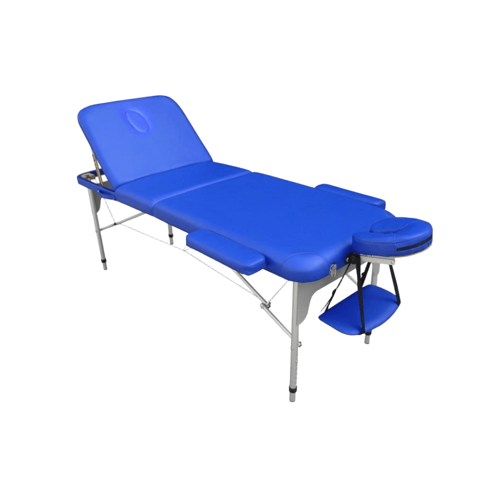Camilla plegable de aluminio 3 cuerpos – versatilidad, confort y resistencia para uso profesional Camilla portátil de aluminio con diseño de 3 cuerpos, ideal para masajes, tratamientos de estética, acupuntura y terapias diversas. Tapizada en cuero sintético (PVC) y equipada con espuma de alta densidad de 4 cm para mayor comodidad. Ligera, estable y fácil de transportar, gracias a su bolsa con ruedas incluida. Características y beneficios: • Estructura de aluminio ligera y resistente • Tapizado en cuero sintético (PVC) de fácil limpieza • Espuma de 4 cm con densidad de 20 kg/m³, firme y confortable • Altura regulable de 69 a 84 cm para mejor ergonomía del profesional • Reposacabezas con orificio para posicionamiento anatómico • Dimensiones: 192 x 70 cm (hasta 220 x 90 cm con accesorios) • Soporta hasta 250 kg de peso • Peso neto: 14 kg • Incluye bolsa de transporte con ruedas para mayor comodidad • Uso previsto: masajes, medicina estética, acupuntura y terapias manuales .