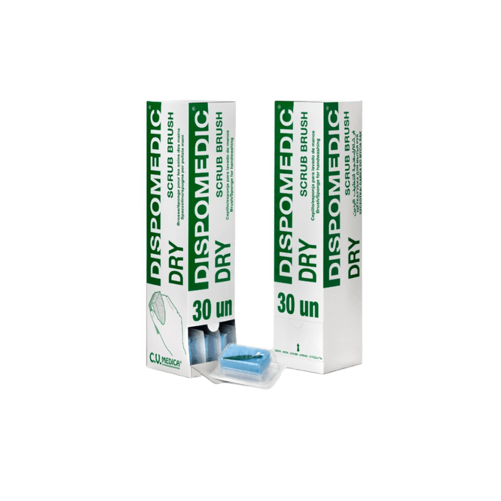 Cepillo Quirúrgico Seco Estéril Dispomedic Cepillo con esponja estéril y sin antiséptico, diseñado para el lavado de manos en entornos clínicos de alto riesgo y para la higiene preoperatoria del paciente.