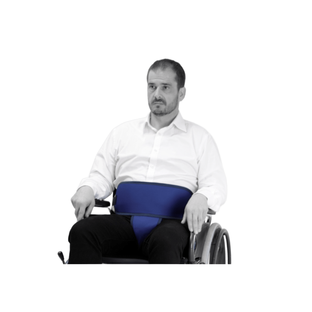 Cinturón silla estándar con banda perineal. Cinturón de sujeción para silla estándar con banda perineal, diseñado para sujetar al paciente de manera eficaz, manteniendo total libertad de movimiento en el torso y las extremidades.