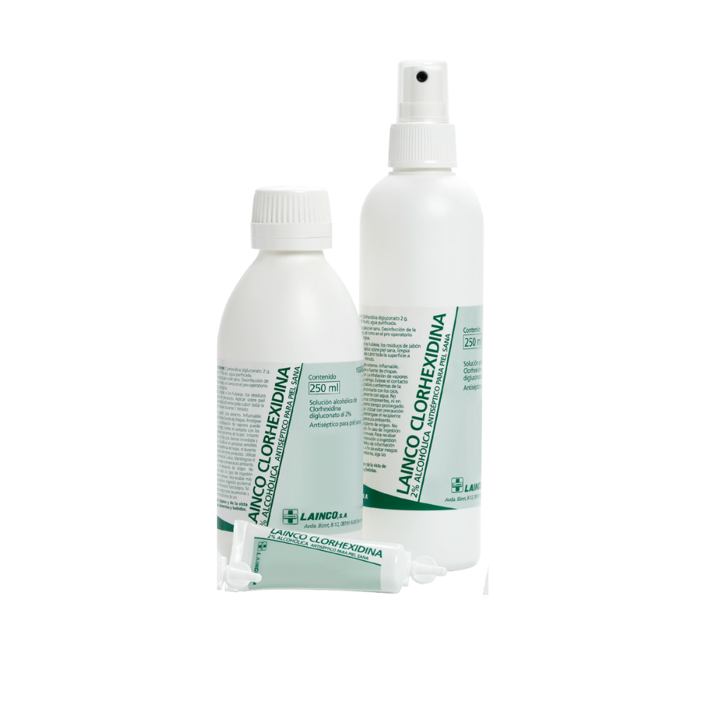 Spray Clorhexidina 2% Alcohólica-Envase de 250 ml Solución antiséptica alcohólica con clorhexidina al 2% en formato spray. Ideal para la desinfección rápida de piel sana antes de procedimientos médicos. Envase de 250 ml con pulverizador.