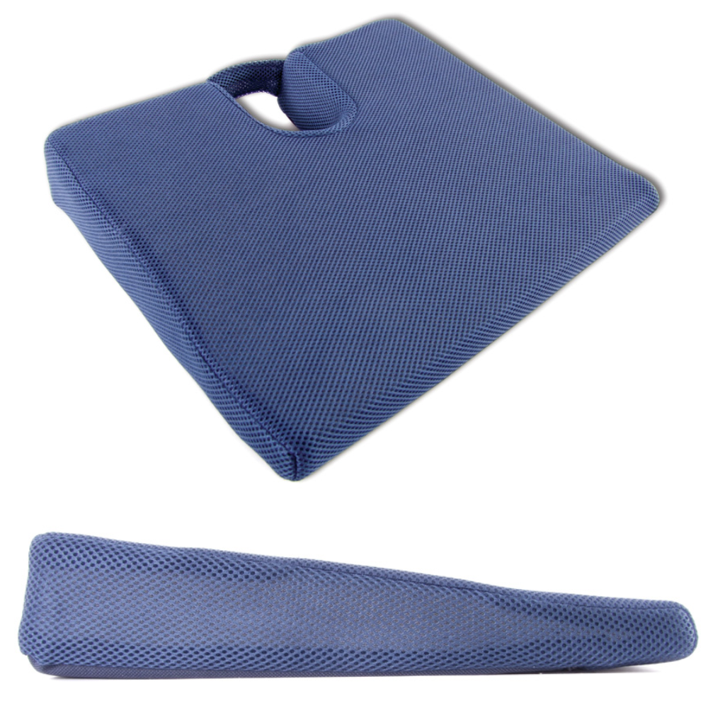 COJÍN CUÑA P/ COXIS - UNIDAD Cojín en forma de cuña diseñado para aliviar la presión sobre el coxis y mejorar la postura al sentarse. Ideal para uso en oficina, casa o coche.