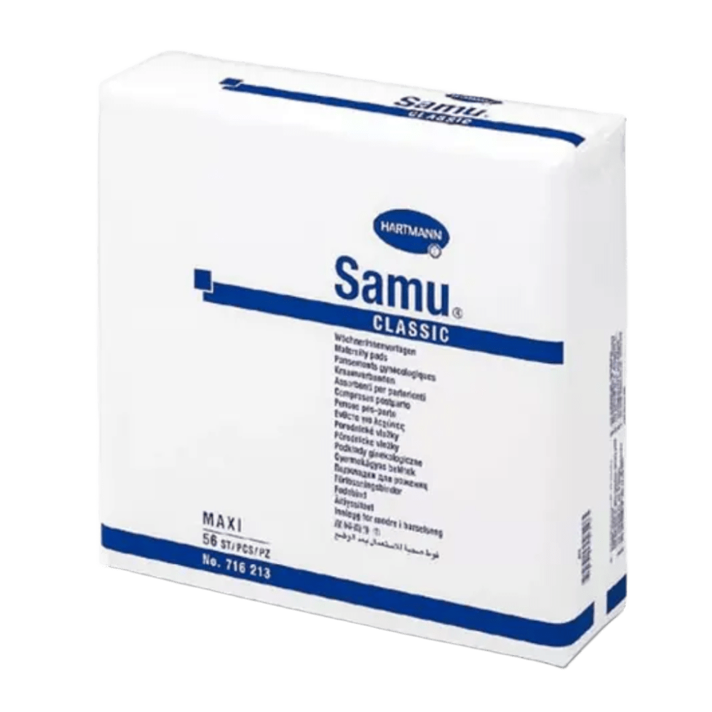 Las compresas postparto Samu son un producto sanitario de Clase I con marcado CE, diseñadas con un núcleo de celulosa de alta absorción y un recubrimiento suave de non-woven para ofrecer máxima protección y confort tras el parto o cirugías ginecológicas. Garantizan una absorción rápida y completa, cuidando la piel sensible y asegurando una recuperación cómoda y segura.