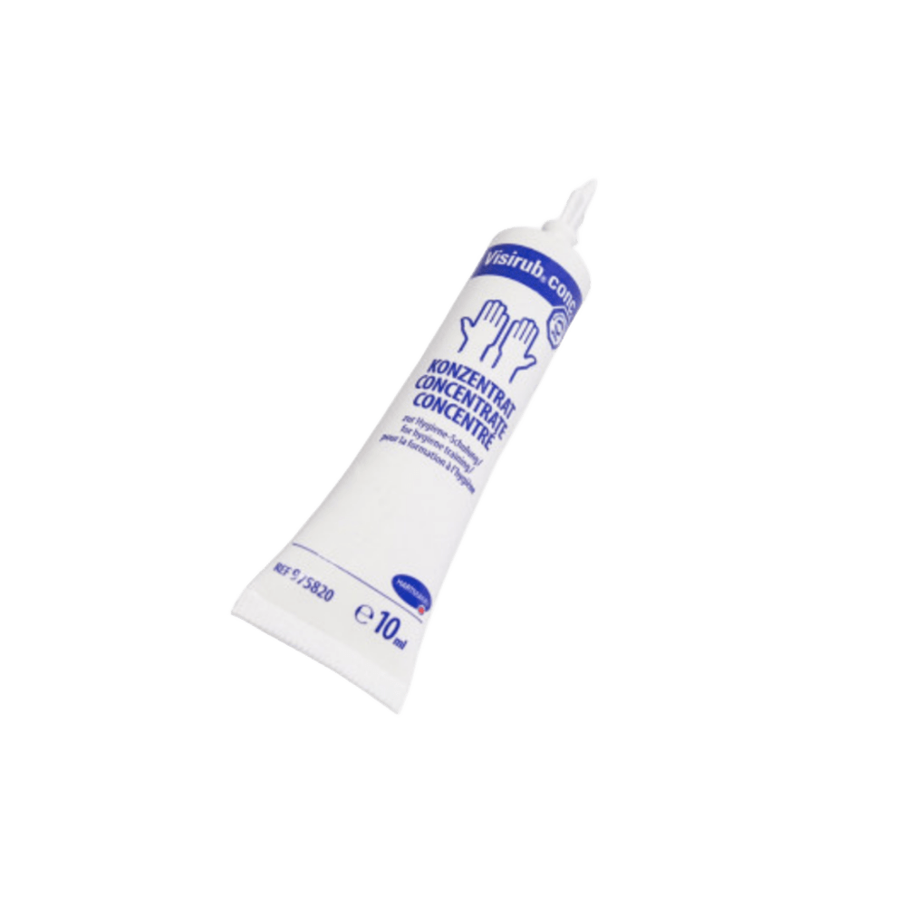 Visirub – Solución formativa para control de calidad en la desinfección higiénica de manos (10 ml) Visirub es un líquido de contraste concentrado diseñado para formación y evaluación en técnicas de higiene de manos. Utilizado en combinación con antisépticos hidroalcohólicos para piel sana, como Sterillium o Sterillium Gel, permite comprobar visualmente la correcta cobertura durante la antisepsia. Aplicado junto al desinfectante habitual, Visirub resalta, bajo luz ultravioleta (UV), las zonas de la piel que no han sido correctamente tratadas. Esta herramienta es fundamental en programas de formación y control de calidad en hospitales, clínicas y centros sanitarios. Se presenta en un práctico envase de 10 ml, ideal para uso individual o sesiones formativas. Características destacadas: • Solución de contraste para formación en higiene de manos • Uso conjunto con antisépticos hidroalcohólicos (p. ej., Sterillium) • Visualización bajo luz UV – identifica zonas sin desinfección • Ideal para formación de personal sanitario y auditorías internas • Compatible con piel sana • Envase de 10 ml – formato práctico y portátil .