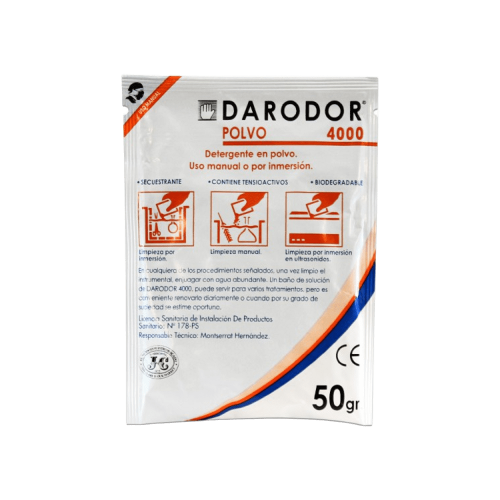 Darodor 4000 Polvo – Limpieza y descontaminación eficaz para material sanitario Darodor 4000 en formato polvo es un detergente descontaminante de uso manual, formulado para la limpieza segura y efectiva de material clínico y de laboratorio. Su acción microbicida permite eliminar agentes patógenos durante el proceso de lavado, garantizando una descontaminación adecuada antes de la desinfección o esterilización. Este producto es ideal para entornos sanitarios y laboratoriales donde se requiere una limpieza rigurosa del instrumental, combinando eficacia y seguridad en su aplicación. Características destacadas: • Detergente en polvo con acción microbicida • Uso manual • Indicado para material clínico y de laboratorio • Eficaz en la descontaminación previa a la desinfección • Ideal para hospitales, clínicas y laboratorios .