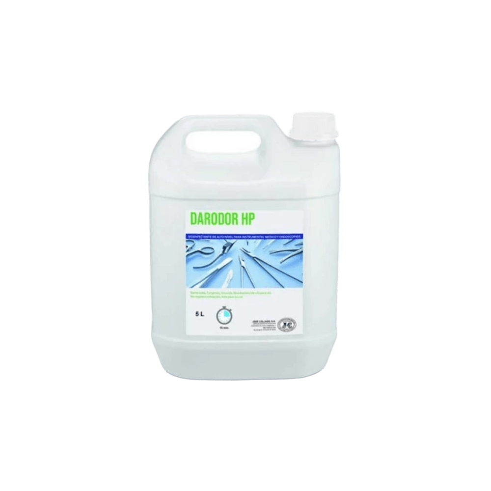 Darodor HP 5 L – Desinfectante de Alto Nivel Desinfectante listo para usar, eficaz en 15 minutos. Actúa como bactericida, fungicida, micobactericida, virucida y esporicida. Alta compatibilidad con materiales. Ideal para productos sanitarios invasivos.