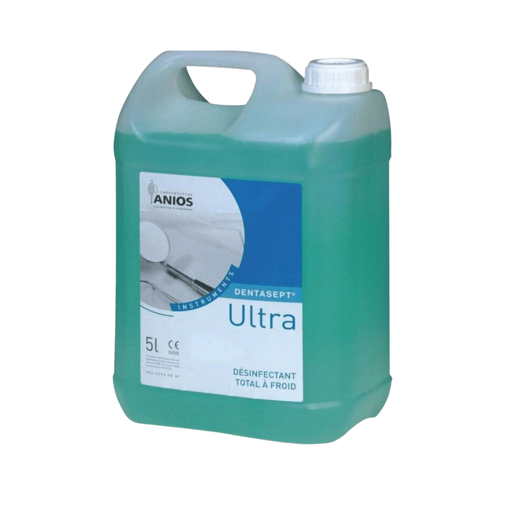 El Dentasept Ultra de Laboratoires Anios (Ecolab) es una solución desinfectante de alto nivel, lista para usar, diseñada para la desinfección en frío de instrumental termosensible en el ámbito dental.
