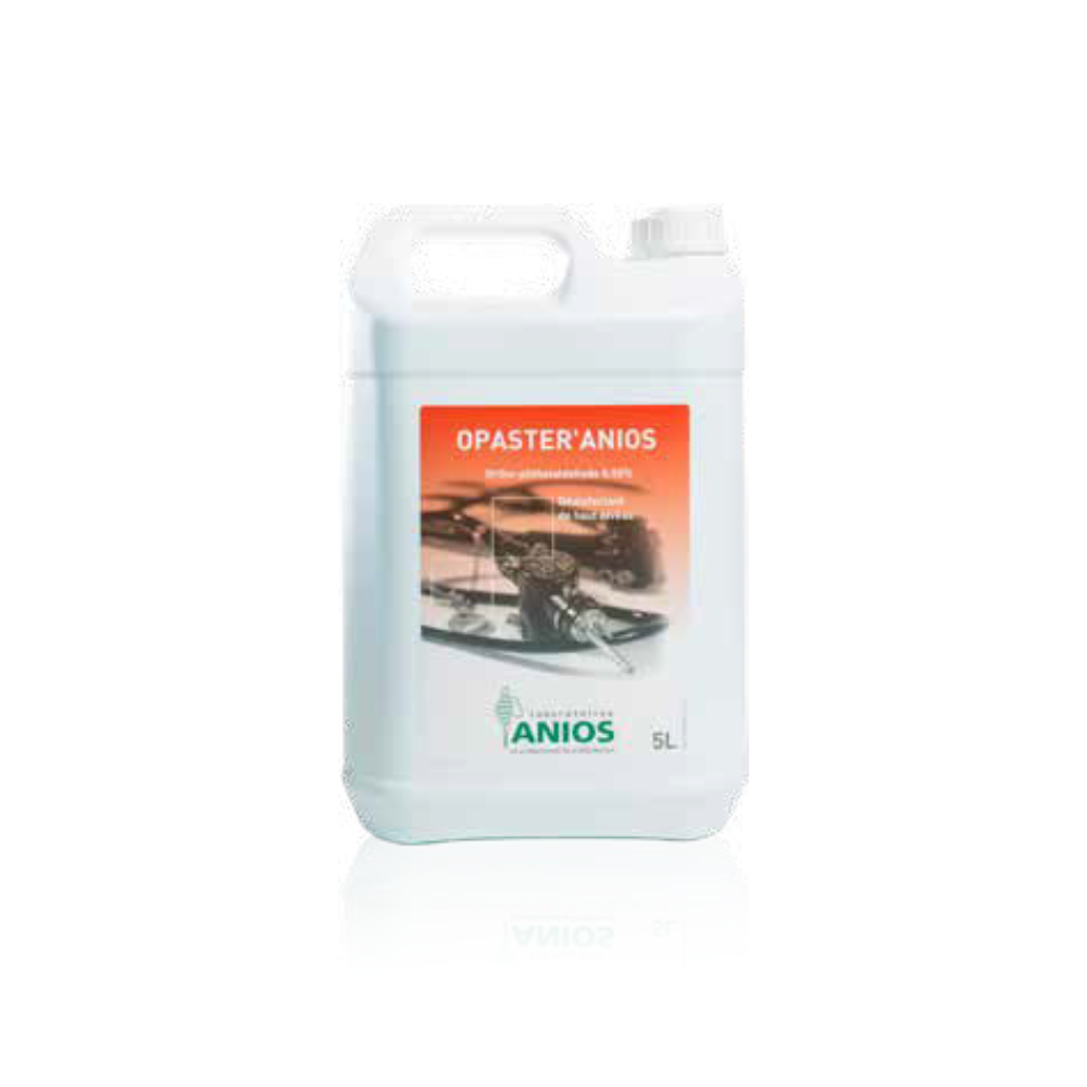 Desinfectante instrumental alto nivel Anios. Opaster’Anios es un desinfectante de alto nivel a base de orto-ftalaldehído (0,55%) diseñado para la desinfección eficaz de productos sanitarios, especialmente material quirúrgico, médico, endoscópico y termosensible. Ofrece amplia compatibilidad con materiales, acción rápida en 5 minutos y un espectro microbiológico completo.