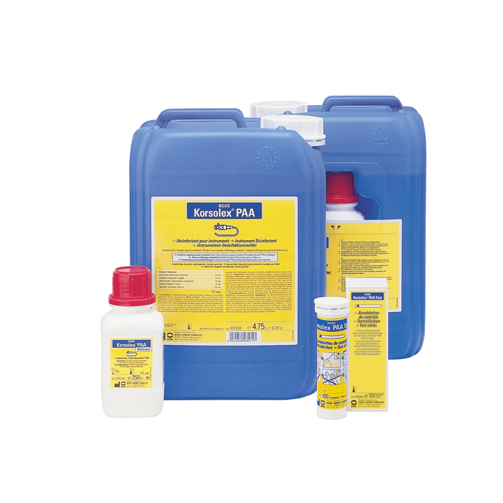 Korsolex PAA – Desinfectante de Alto Nivel para Instrumental Médico, 5 L Desinfectante listo para usar a base de ácido peracético. Alta eficacia frente a microorganismos. Ideal para endoscopios flexibles e instrumentos termo-sensibles.