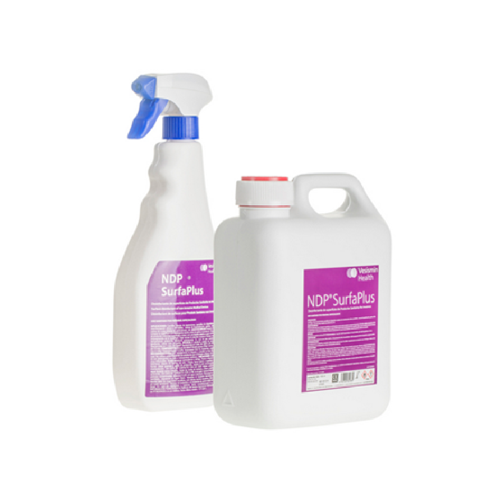 Desinfectante en spray para superficies. NDP SurfaPlus es un desinfectante con alcohol, listo para usar, indicado para la desinfección rápida y eficaz de superficies hospitalarias, con secado inmediato y acabado brillante.