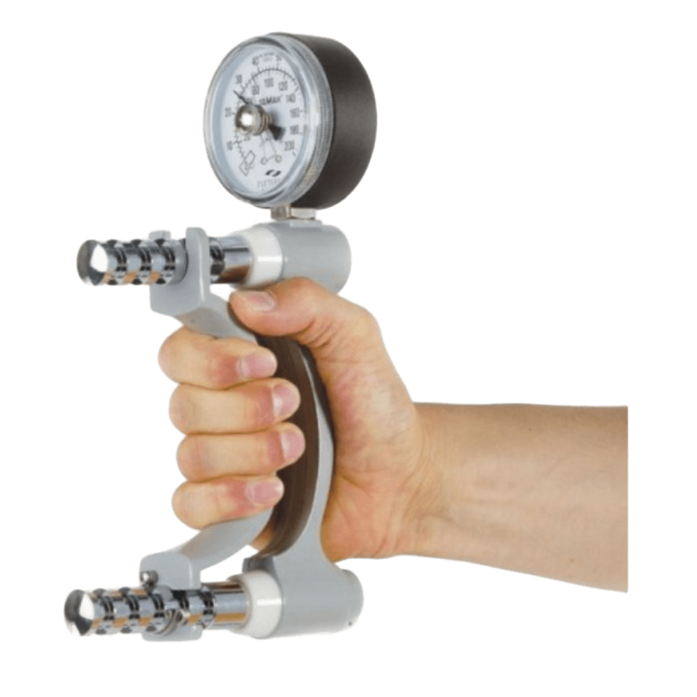 Dinamómetro de Mano Jamar – Evaluación precisa de la fuerza de prensión Dispositivo hidráulico de alta precisión para medir fuerza de agarre. Escala dual kg/lb, asa ajustable en cinco posiciones y diseño ergonómico. Ideal para fisioterapia y rehabilitación.