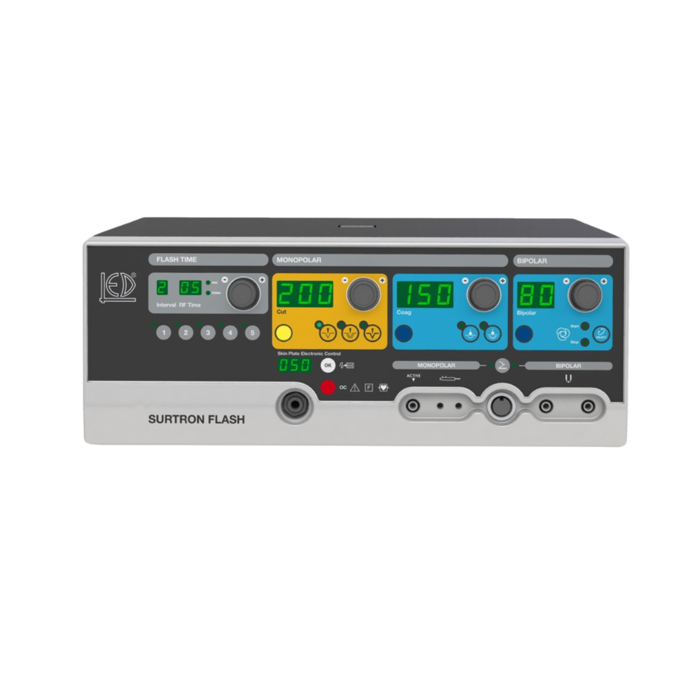 SUFRTRON FLASH HF – Electrobisturí de alta frecuencia para microcirugía y cirugía de precisión Electrobisturí digital para tratamientos quirúrgicos avanzados, con modos programables, funciones monopolar/bipolar y tecnología Soft Coag para resultados seguros y controlados.