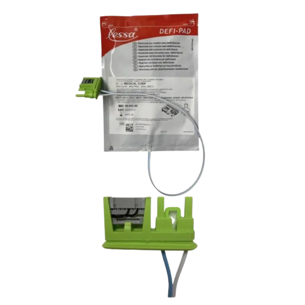 Electrodos para Desfibrilación en Adultos – Compatibles con ZOLL AED Plus y ZOLL AED Pro Este par de electrodos está diseñado para su uso en procedimientos de desfibrilación externa en adultos, siendo totalmente compatible con los desfibriladores ZOLL AED Plus y AED Pro. Fabricados con materiales de alta calidad, proporcionan una excelente conductividad y adherencia durante maniobras de reanimación. Cada electrodo cuenta con una superficie total de 136 cm² y un área activa de 100 cm², lo que garantiza una distribución uniforme de la energía eléctrica, mejorando la efectividad del choque y minimizando riesgos. Son parches desechables de un solo uso, diseñados para una aplicación rápida, segura y eficiente en situaciones críticas. .Características principales: Compatibilidad: ZOLL AED Plus y ZOLL AED Pro. Uso: adultos (>25 kg). Aplicaciones: desfibrilación externa. Área activa por electrodo: 100 cm². Superficie total por electrodo: 136 cm².