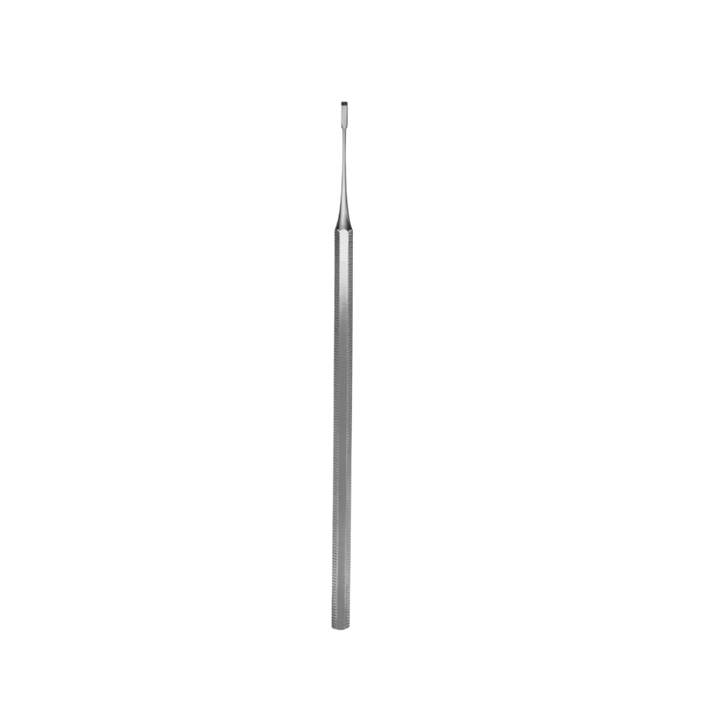 Escoplo Aesculap Recto 2 mm DC084R Escoplo quirúrgico recto de 2 mm de ancho y 15 cm de longitud. Instrumento de precisión para procedimientos óseos y trabajos delicados en cirugía.