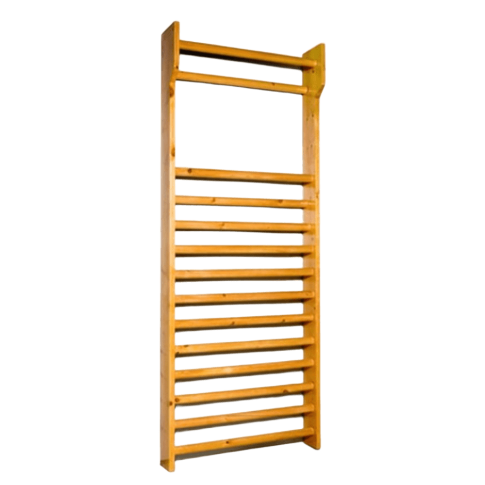 ESPALDERA 1 CUERPO MADERA DE HAYA BARNIZADA 240 mm. x 100 mm. - UNIDAD Espaldera de un cuerpo fabricada en madera de haya barnizada, ideal para ejercicios de rehabilitación, estiramientos y fortalecimiento muscular. Medidas: 2400 x 1000 mm. Unidad.