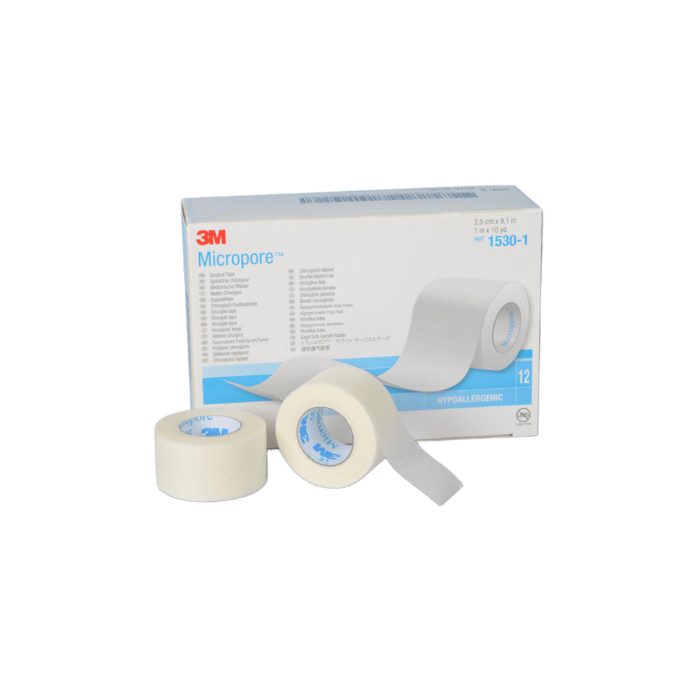 Cinta Quirúrgica de Papel Microporosa – Hipoalergénica y resistente a la humedad Cinta adhesiva de papel microporoso color piel, hipoalergénica y libre de látex. Transpirable, resistente al agua y de fácil remoción sin dejar residuos.