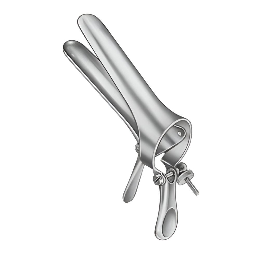 Espéculo vaginal CUSCO. Espéculo ginecológico tipo Cusco, reutilizable, diseñado para la inspección visual del cuello uterino con apertura bivalva ajustable.