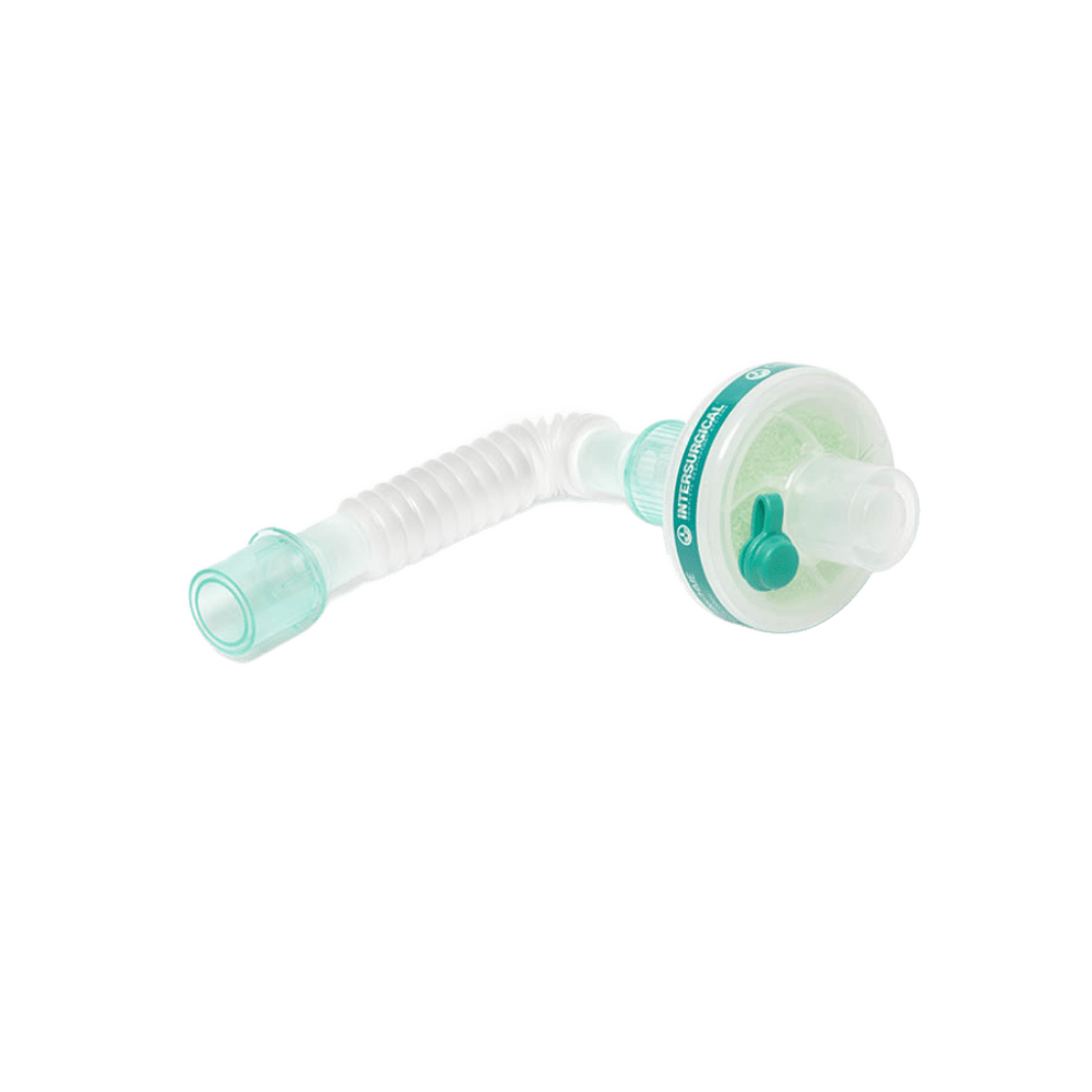 Filtro Bacteriano-Vírico “Clear-Therm 3” – HMEF de un solo uso Filtro con matriz hidrofóbica electrostática, alta eficacia de filtración, humidificación y retención de calor. Carcasa transparente, tapón de seguridad y sistema antioclusión.