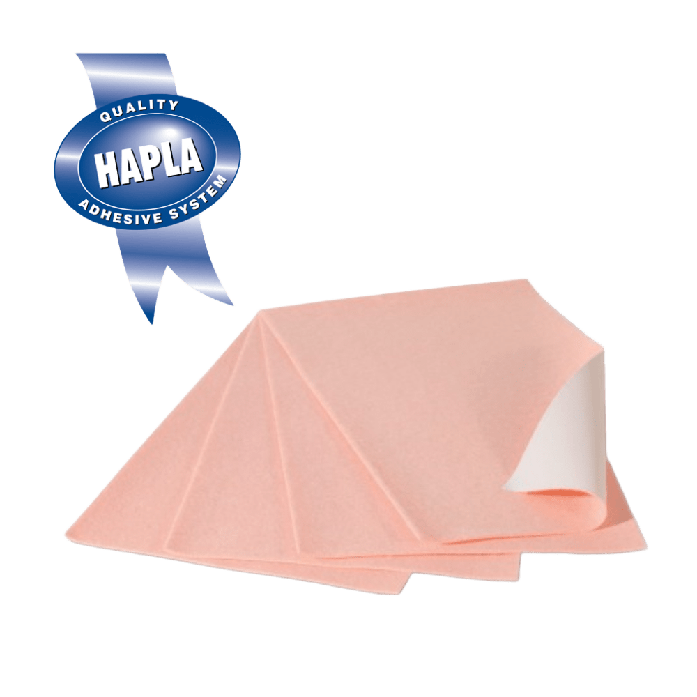 Excelente fieltro fabricado con materiales de alta calidad y adhesivo hipoalergénico Hapla de color rosa.