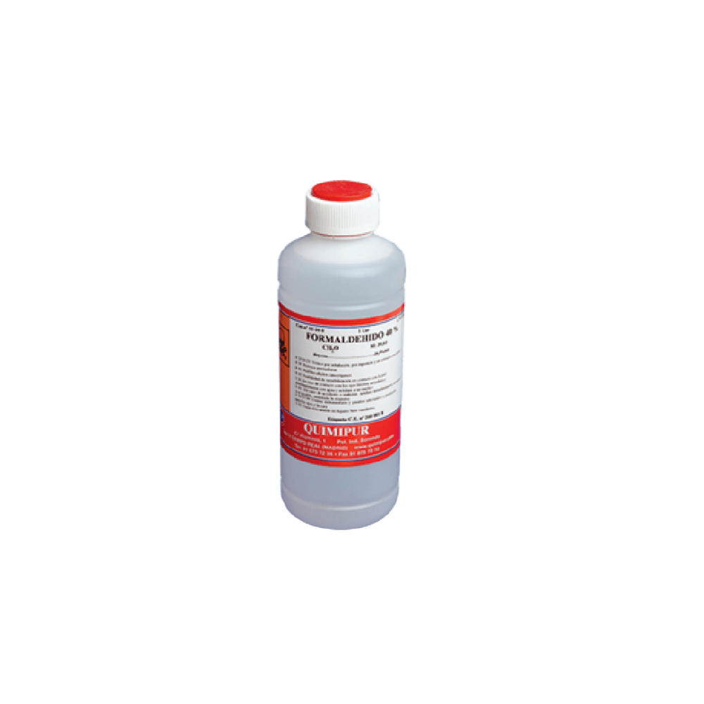 Formaldehído 40% – Envase de 1 litro Solución concentrada de formaldehído al 40%, indicada para aplicaciones industriales, fijación de tejidos y procesos de laboratorio.