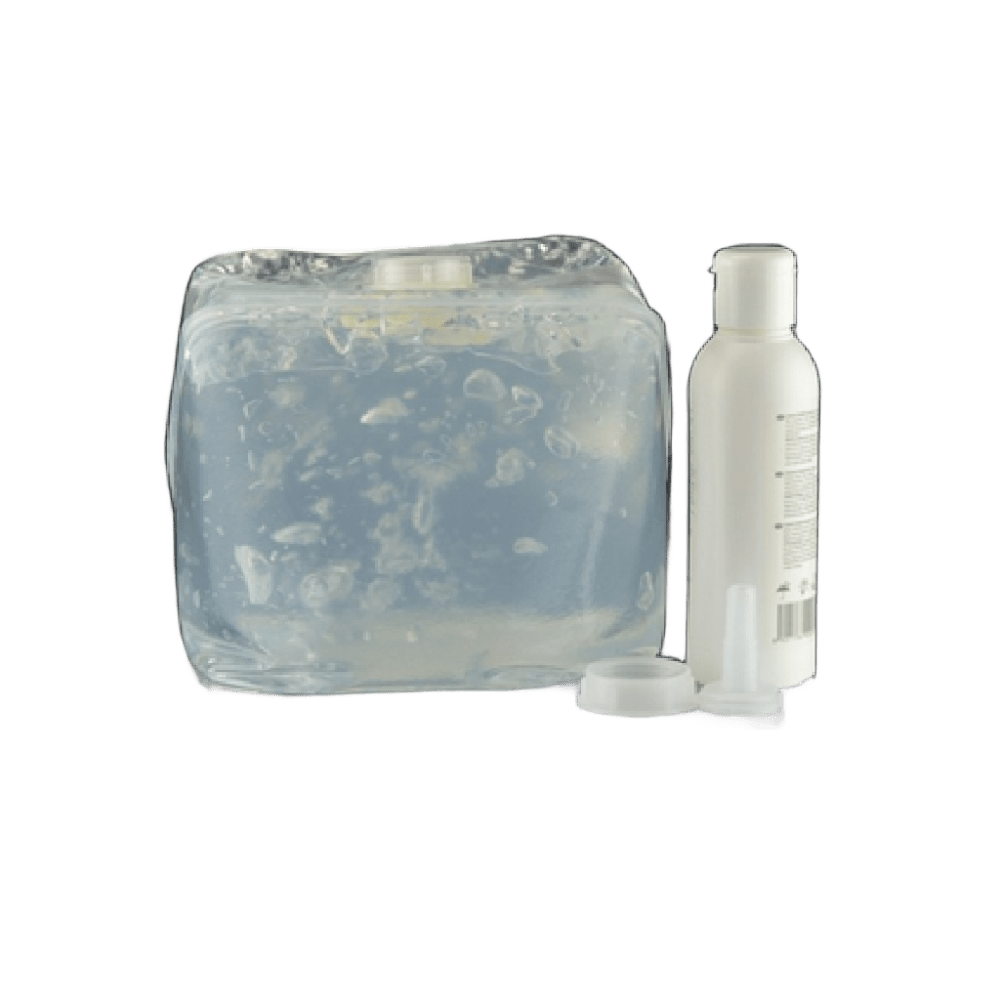 Gel transparente para ultrasonido, base acuosa, sin formaldehído, pH neutro (7), propiedades antibacterianas y excelente tolerancia dérmica. Ofrece transmisión precisa de ultrasonido. Disponible en bidón de 5 litros, botellas de 250 ml y 1 litro. Apto para uso general en enfermería y diagnóstico por imagen