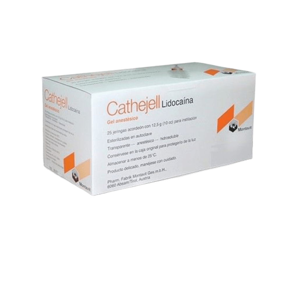 Gel Lubricante Estéril Cathejell 12,5 g – Lubricación, anestesia y antiséptico en una sola aplicación Cathejell es un gel estéril especialmente formulado para facilitar la instilación uretral, proporcionando lubricación, anestesia local y efecto antiséptico en un solo producto. Su fórmula contiene hidrocloruro de lidocaína, que actúa como anestésico local, e hidrocloruro de clorhexidina, reconocido por sus propiedades antisépticas. Compatible con todos los materiales comúnmente usados en urología —incluyendo látex, silicona y PVC— este gel tiene un pH de 5, es termosensible, incoloro, inodoro, no graso y soluble en agua. No mancha y no contiene ingredientes activos irritantes. Se presenta en monodosis de 12,5 g con punta rompible y fuelle, lo que permite una aplicación directa, cómoda y segura, evitando la contaminación del contenido. Producto estéril, de un solo uso y sin látex. Características destacadas: • Gel estéril para instilación uretral • Contiene lidocaína (anestésico) y clorhexidina (antiséptico) • Compatible con materiales médicos: látex, silicona y PVC • No graso, no mancha, soluble en agua • pH 5 – termosensible, incoloro e inodoro • Monodosis de 12,5 g con punta rompible y fuelle • Presentación: caja con 25 unidades .