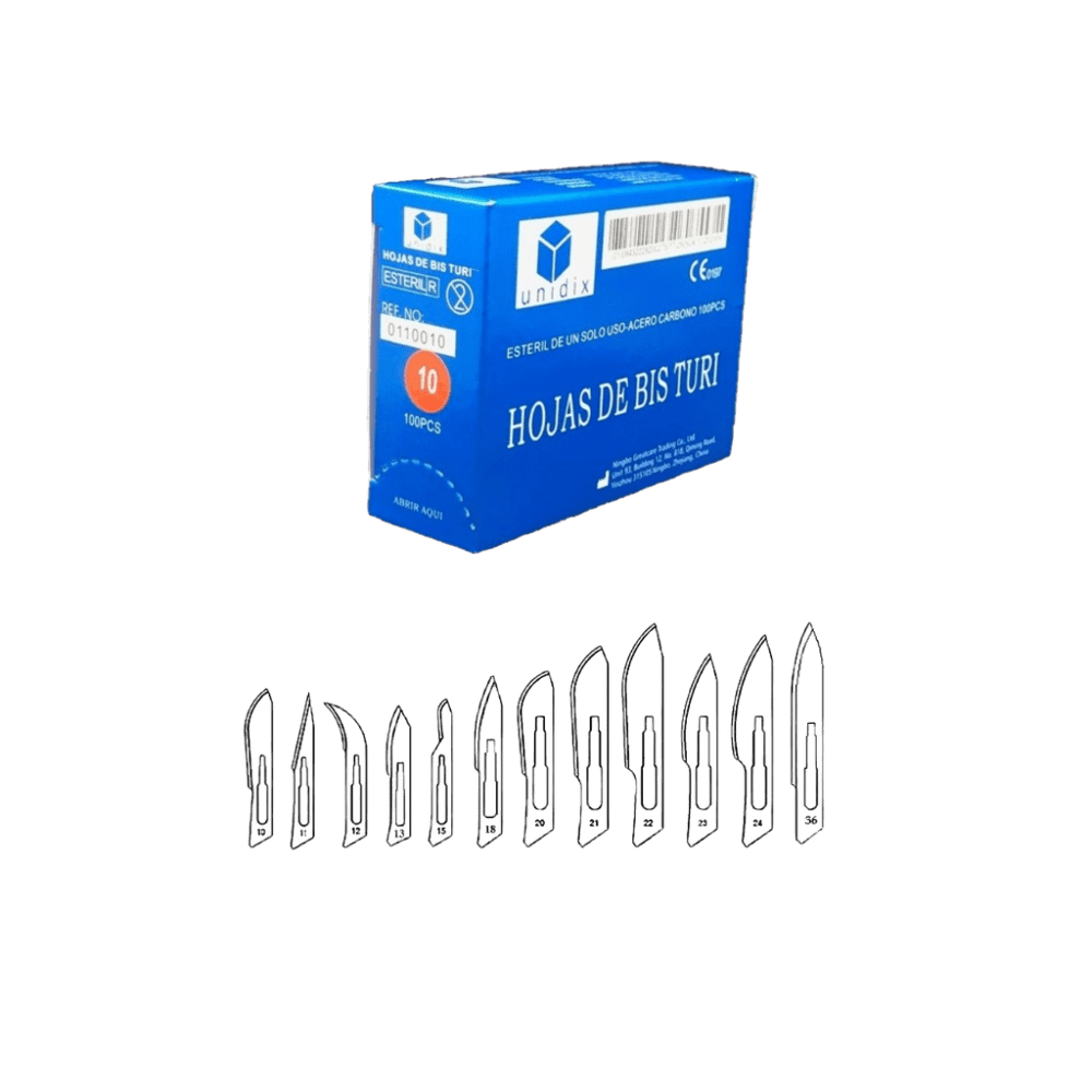 | 0110010 | HOJA DE BISTURÍ ESTÉRIL UNIDIX Nº 10 - CAJA DE 100 UDS | 5,34 € | Disponible(466 uds. en almacén) | -0+99999 |
