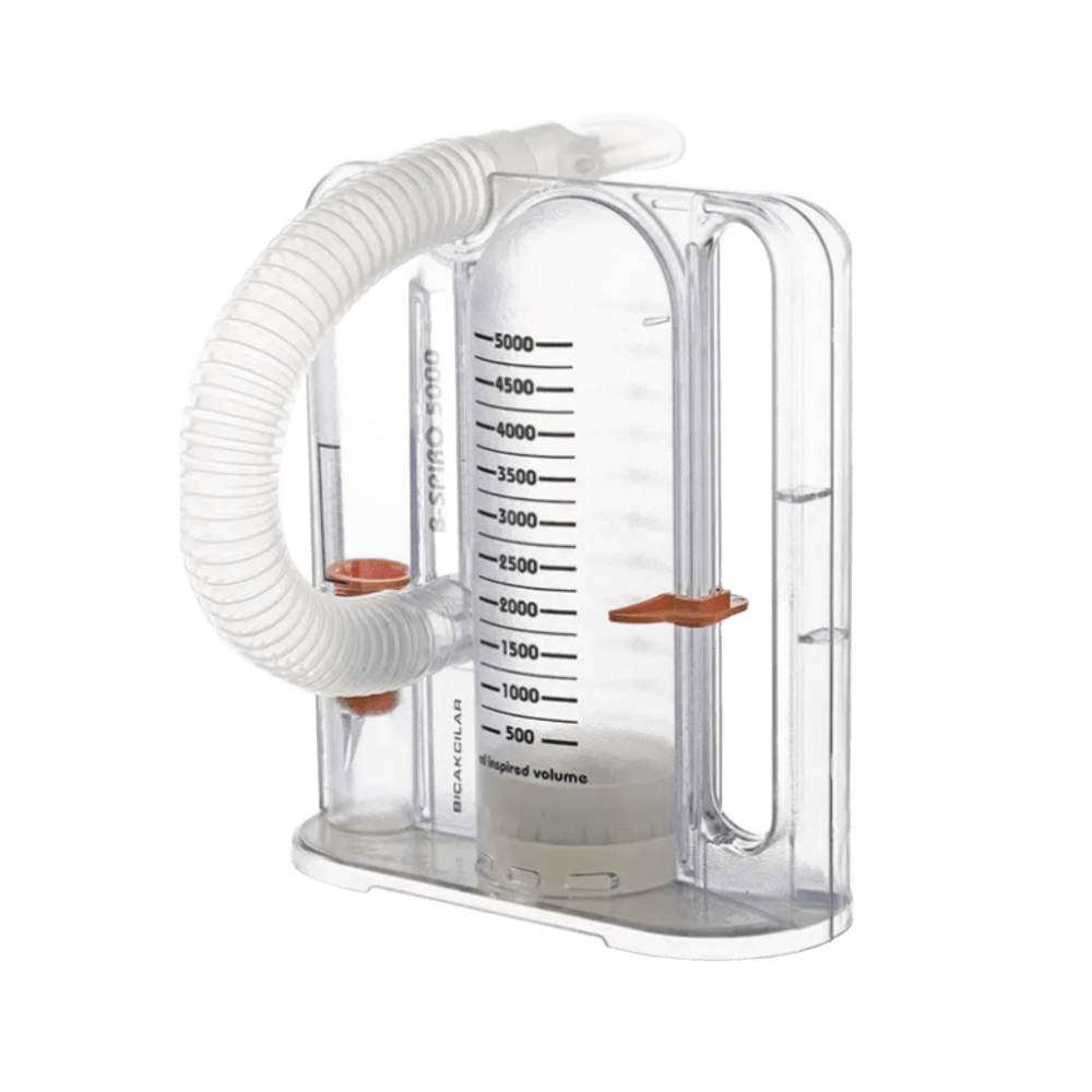 Permite el control preciso del aire inspirado y por tanto el seguimiento de la evolución del paciente a medida que realiza los ejercicios de terapia respiratoria. Consta del cuerpo del incentivador propiamente unido a un tubo corrugado y la boquilla diseñada para el máximo confort del paciente. Presentaciones para pacientes adultos y pediátricos.