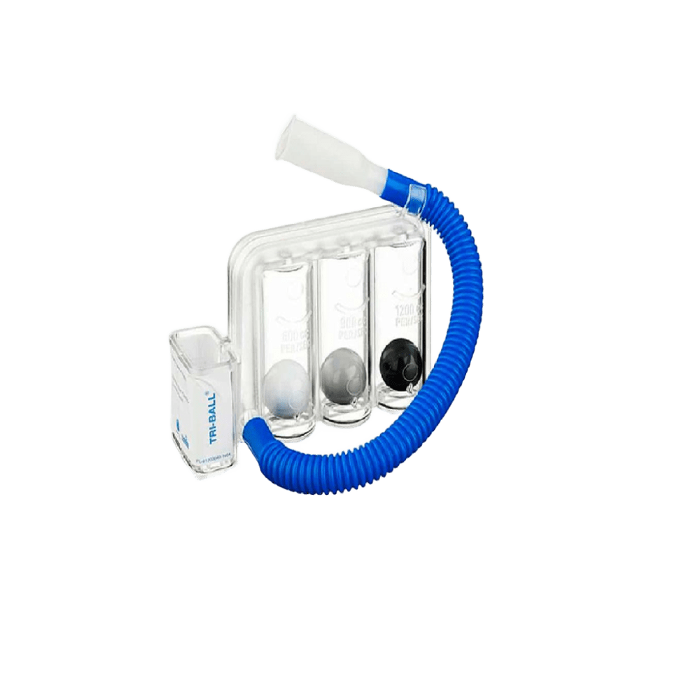 Incentivador Respiratorio TRI-BALL – Ejercicio respiratorio seguro y controlado Dispositivo de fisioterapia respiratoria que permite medir el flujo inspirado, con doble filtro de seguridad y sistema higiénico de secado de boquilla.