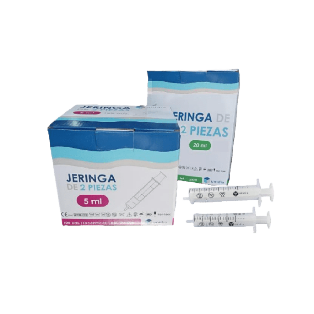 Jeringa 2 Cuerpos Luer Slip UNIDIX – Precisión, higiene y versatilidad para aplicaciones médicas La Jeringa de 2 Cuerpos UNIDIX con conexión Luer Slip está diseñada para procedimientos médicos que requieren inyección precisa y segura de fármacos en el cuerpo. Fabricada en polipropileno (PP) con lubricante oleamida, ofrece un deslizamiento suave del émbolo y una experiencia de uso confiable. Su barril transparente permite visualizar claramente el contenido, mientras que el émbolo en tonalidad blanca y la escala con simbología negra garantizan una lectura exacta del volumen. Están esterilizadas mediante óxido de etileno, envasadas unitariamente y listas para un solo uso, siendo completamente libres de látex. Disponible en diversos volúmenes, es ideal para hospitales, clínicas y consultorios médicos que buscan un producto práctico, seguro y de alta calidad. Características destacadas: • Fabricadas en PP con lubricante oleamida • Esterilizadas con óxido de etileno • Conexión tipo Luer Slip • Barril transparente y émbolo blanco • Escala y simbología negra de fácil lectura • Libres de látex y desechables • Disponibles en varios volúmenes