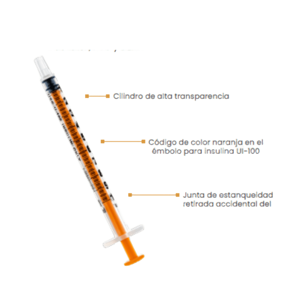 Jeringa SOL-M™ de insulina sin aguja – Punta Slip Jeringa estéril sin aguja, diseñada para la administración precisa de insulina. Con punta Slip para conexión segura y sin fugas. Esterilizada con óxido de etileno.
